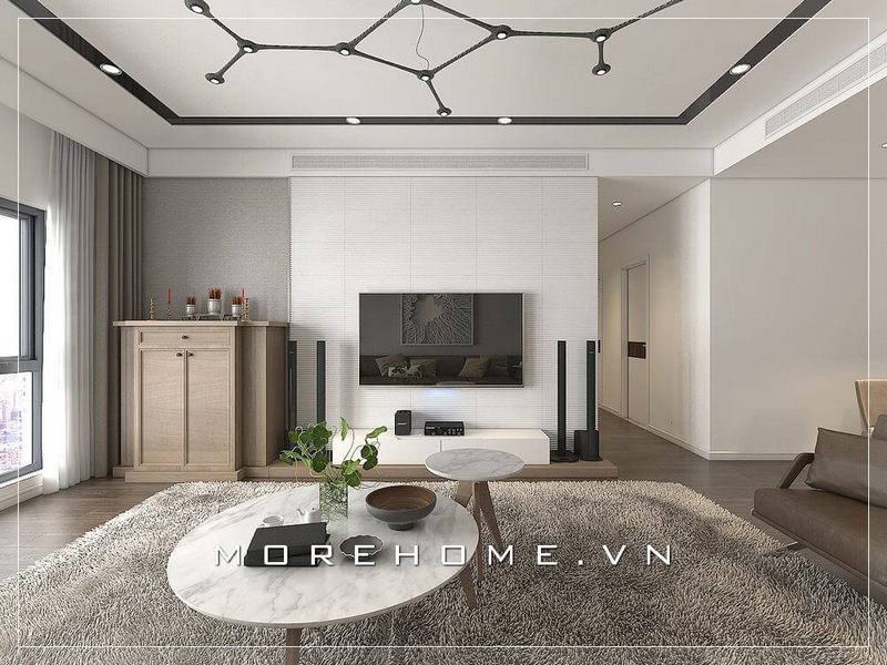Mẫu thiết kế nội thất chung cư hiện đại gam màu trắng sữa mang nét trẻ trung cá tính