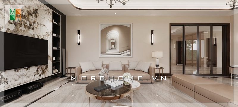 Mẫu cửa kính này đã góp phần tạo nên một không gian phòng khách vừa tiện nghi vừa sang trọng lại có tính thẩm mĩ cao.